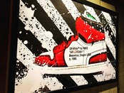 彼のアートは賛否ございますが、模倣品とは違いブランド、商品への敬意や尊重を表現しているアートでございます。